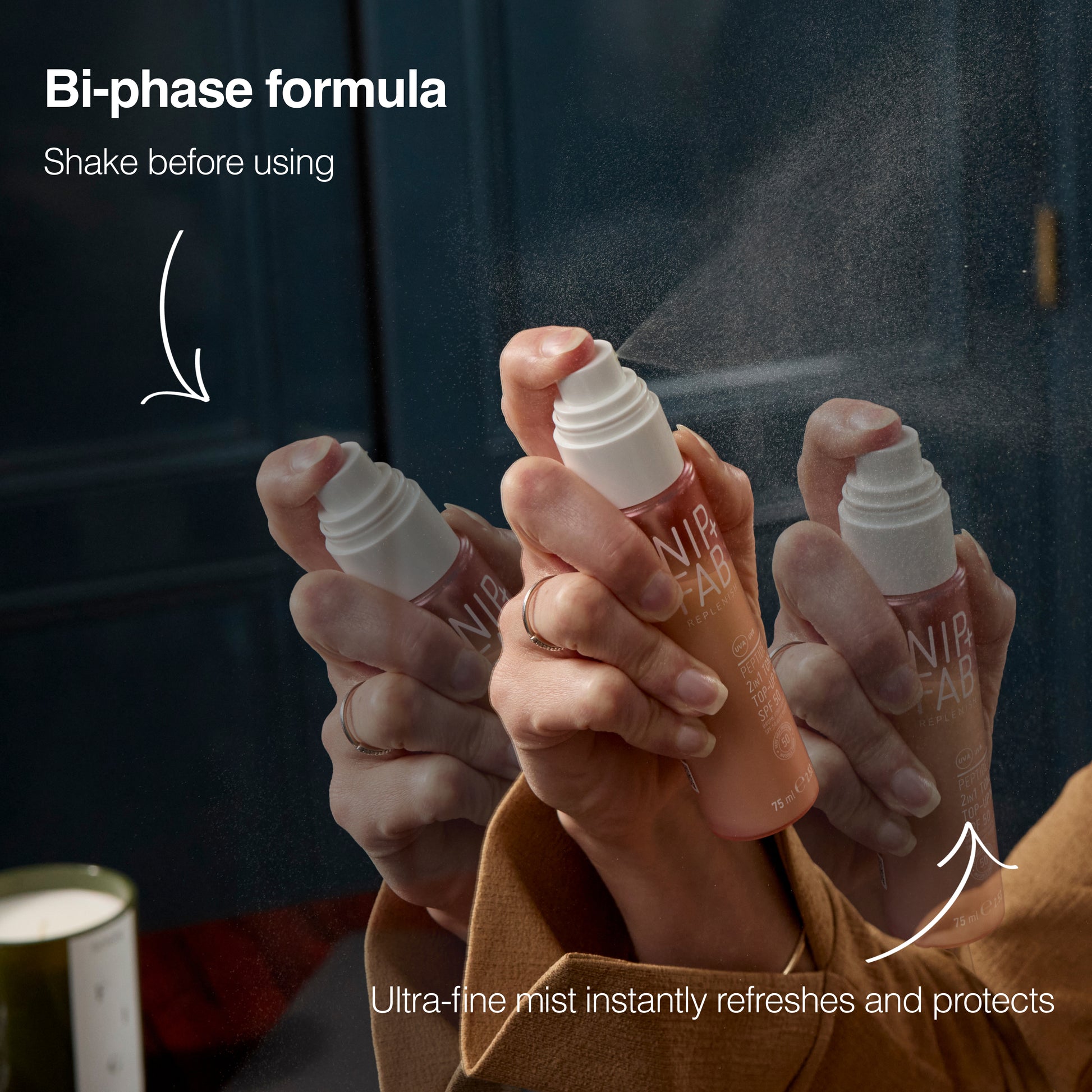 Like skincare, make-up is breathable so will allow for some permeability of the Mist to help maintain protection. The Peptide Mist is a lightweight, invisible, non-greasy formula, perfect to spritz throughout the day. When spraying over make-up, its best to allow for the mist to air dry to avoid disturbing make-up.