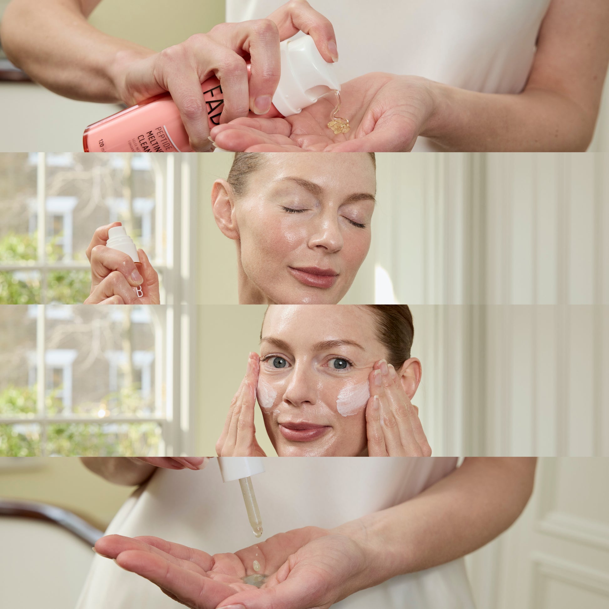Provide the skin with instant hydration and the first layer of protection. Rejuvenating peptides help to plump, firm and tone whilst antioxidant Vitamin E and UV filters help to protect skin against external aggressors and UV damage. Use after cleansing, followed by your daily skincare routine. Then lock it in with your usual SPF.