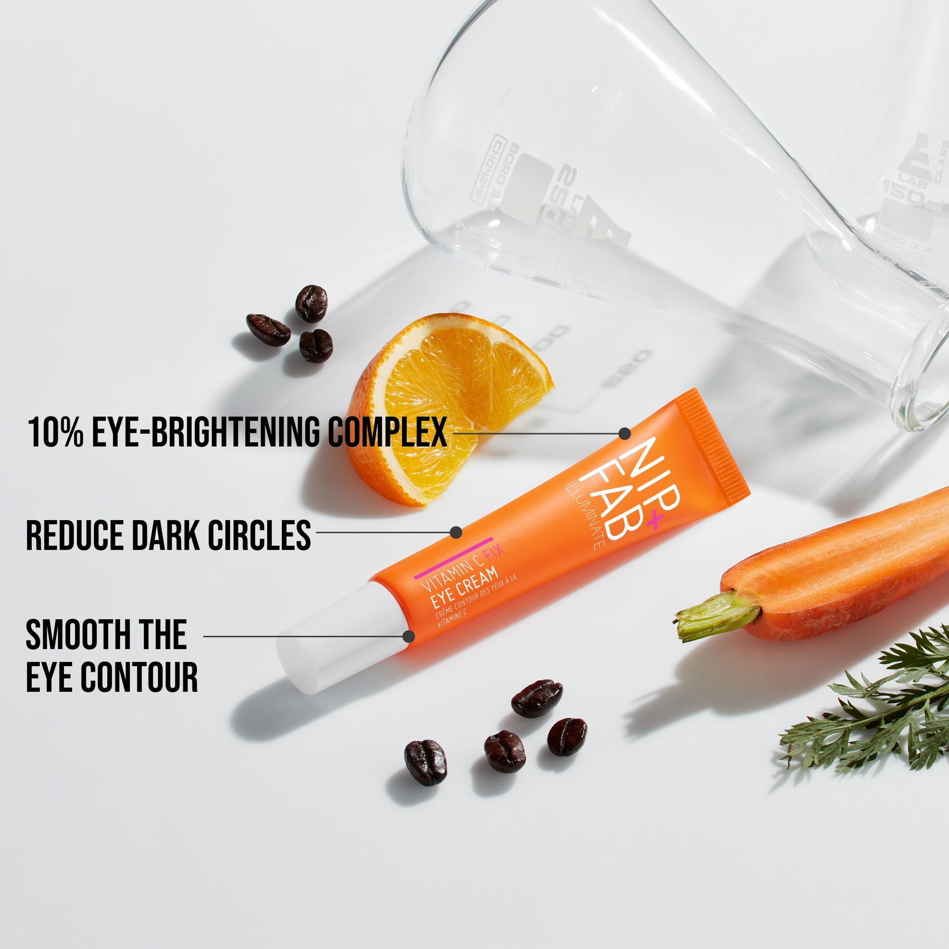Vitamin C worth waking up for. A brand-new innovative, targeted eye cream with a 10% eye-brightening complex, consisting of 5% vitamin C with 3 stable forms of the antioxidant to brighten the under-eye area. Formulated with ferulic acid to boost vitamin C’s effects, as well as peptides, caffeine and niacinamide to help firm and tone, reduce dark circles and smooth the eye contour.