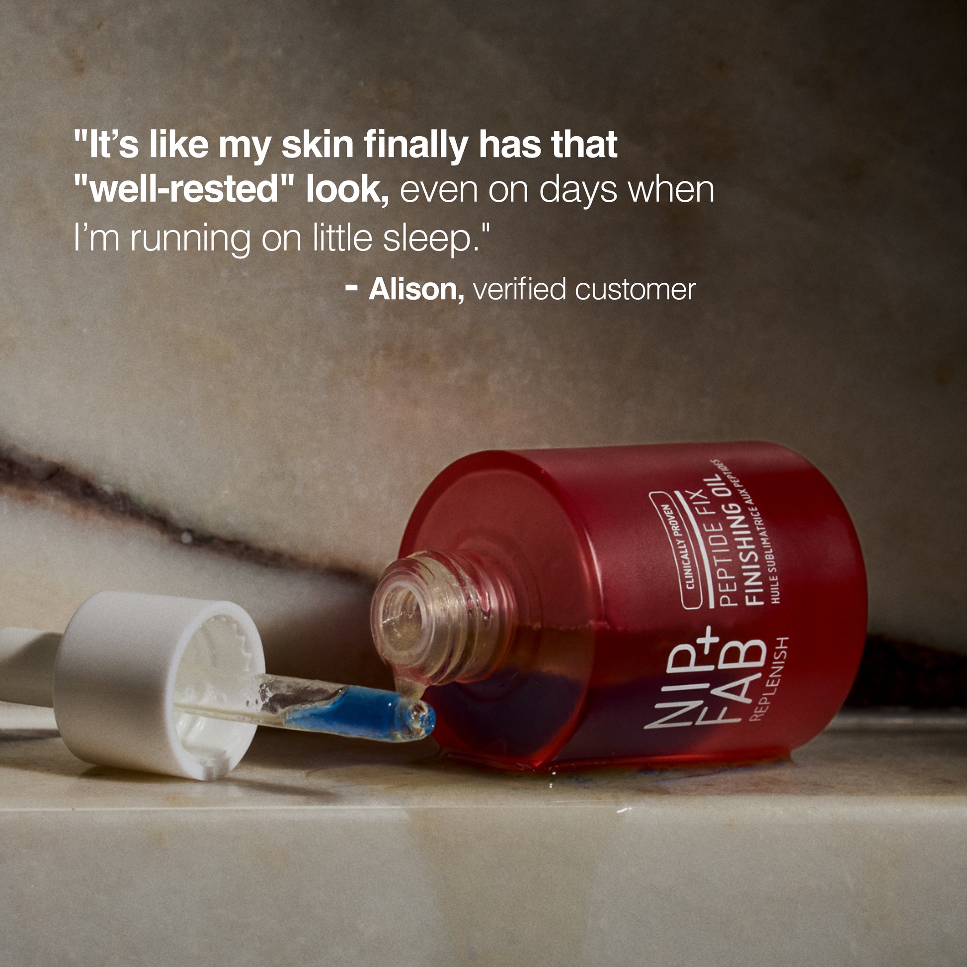 *Proven via independent consumer study on Nip+Fab Peptide Fix Finishing Oil 2% tested on 34 participants for 8 weeks.